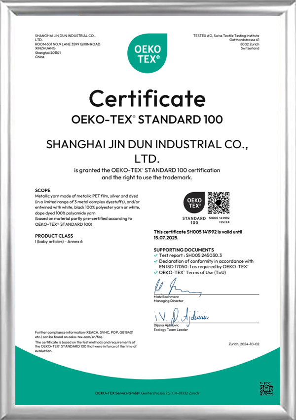 ฐานการผลิตและ R&D ของเราตั้งอยู่ในเมืองหางโจว เจ้อเจียง ผลิตภัณฑ์หลักๆ ได้แก่ ด้ายทองและด้ายเงิน ด้ายแฟนซี ผ้าและเครื่องประดับ เป็นต้น ขอบเขตการใช้งานครอบคลุมถึงเสื้อผ้า เครื่องเรือน ของตกแต่ง บรรจุภัณฑ์ และอุตสาหกรรมอื่นๆ ตอบสนองความต้องการที่แตกต่างกันของลูกค้า และยอมรับการปรับแต่งที่หลากหลาย เราเป็น การปรับแต่งของจีน M ประเภทเส้นด้ายโลหะ ผู้ผลิต และ M ประเภทเส้นด้ายโลหะ โรงงานและบริษัทต่างๆ. ในปัจจุบันผลิตภัณฑ์ของเราส่วนใหญ่ส่งออกไปยังหลายสิบประเทศ เช่น เยอรมนี สเปน อิตาลี สหราชอาณาจักร เกาหลีใต้ แคนาดา รัสเซีย บราซิล และอื่นๆ ลูกค้าสหกรณ์ของเรามีจำนวนมากที่เป็นรายใหญ่และเชื่อถือได้ เพื่อให้แน่ใจถึงคุณภาพ ความปลอดภัย และการปฏิบัติตามข้อกำหนดของผลิตภัณฑ์ของเรา เราได้กำหนดกระบวนการภายในที่เข้มงวด ซึ่งได้รับการสนับสนุนจากการรับรอง Sira, Oeko-Tex และ GRS